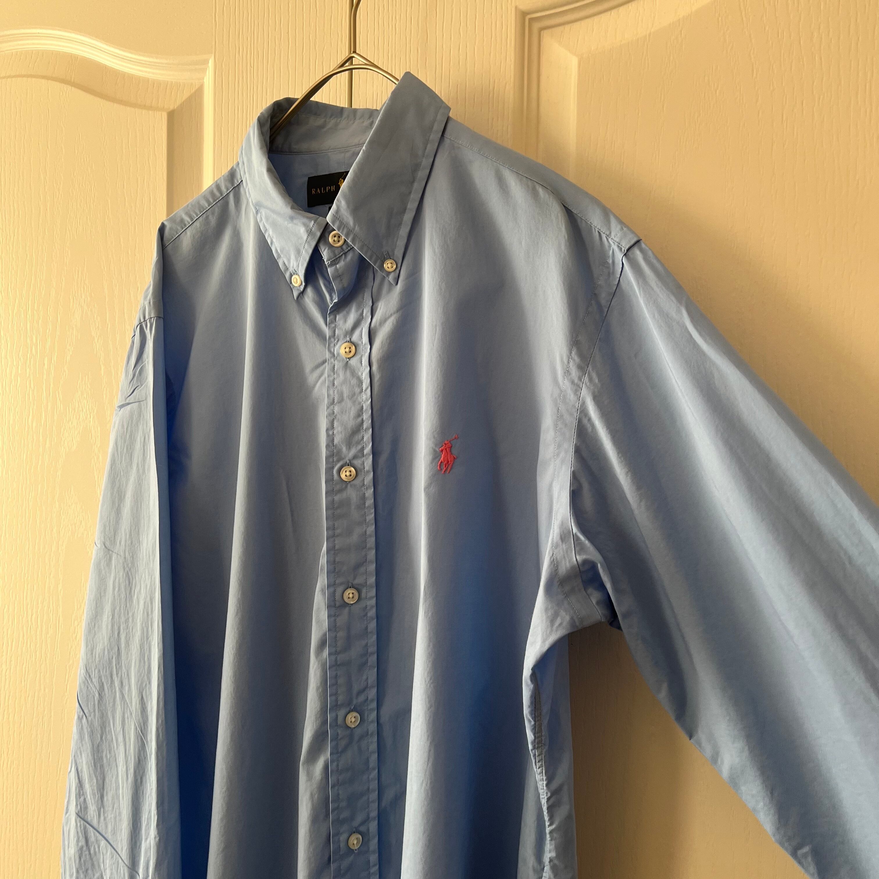 定番のRalph Laurenの長袖シャツです。きれいなブルーカラーのシャツで爽やかに着ていただけるおすすめの一枚。