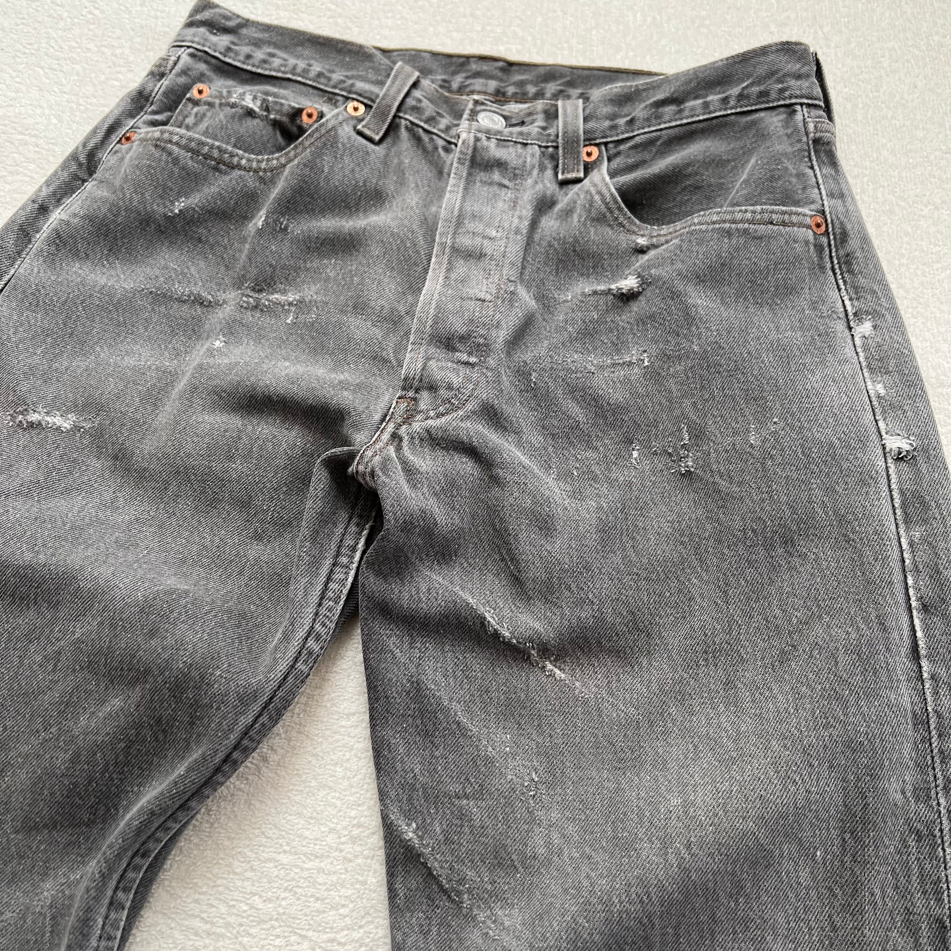 Levi's 501 USA製 W32×L30 リーバイス ブラック デニム ダメージ ジーンズ 90's グレー