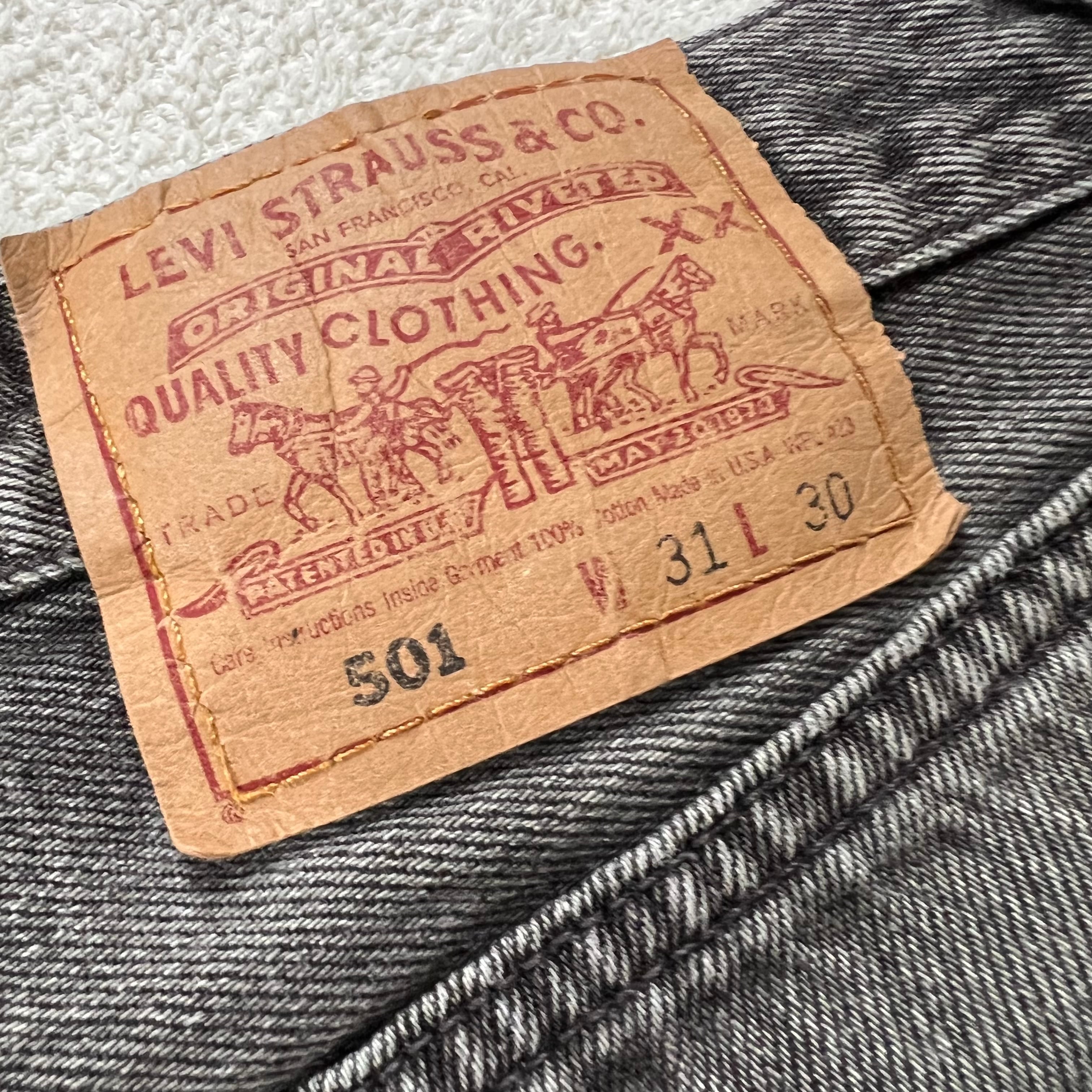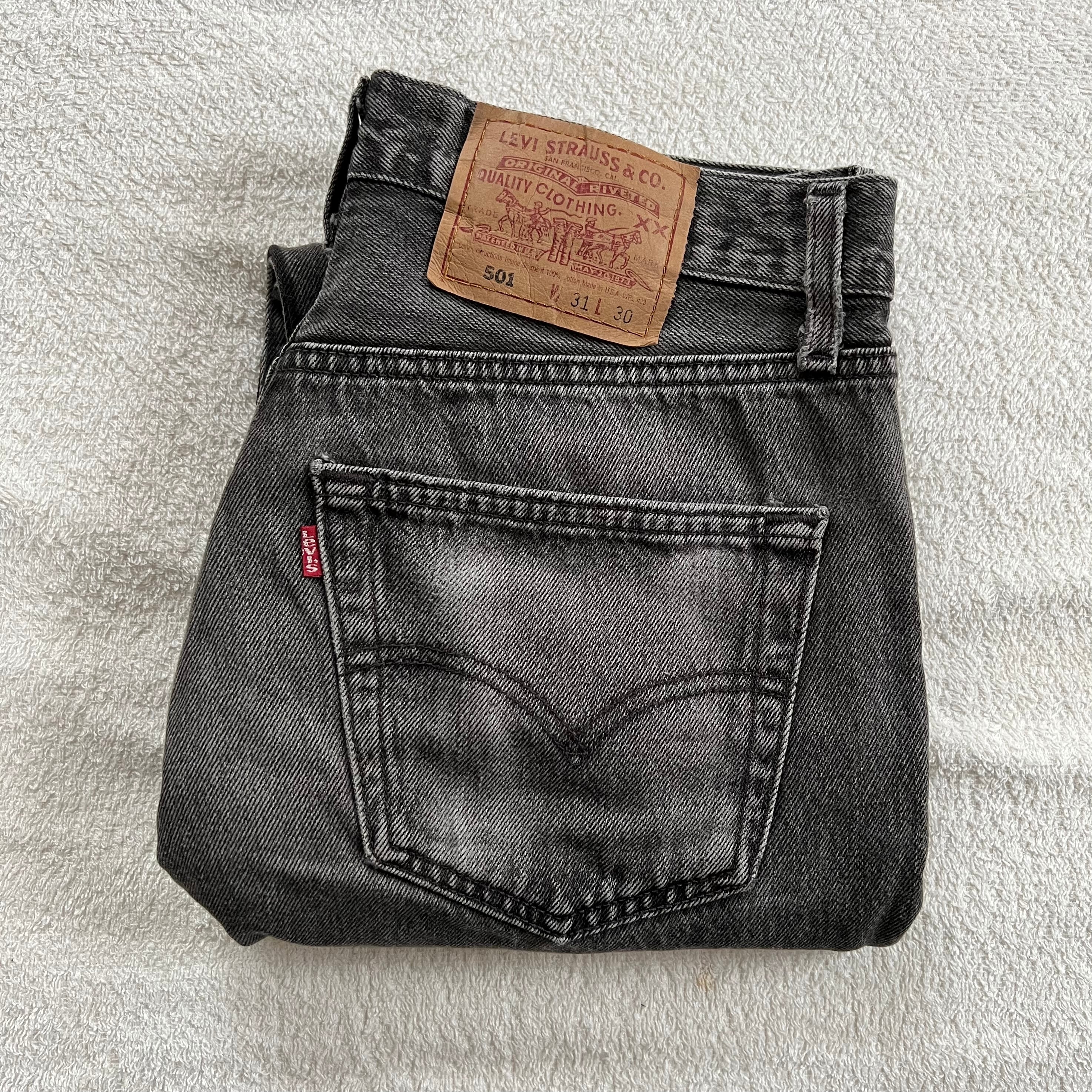 Levi's 501 USA製 W31×L30 リーバイス ブラック デニム ダメージ ジーンズ 90's グレー リペア