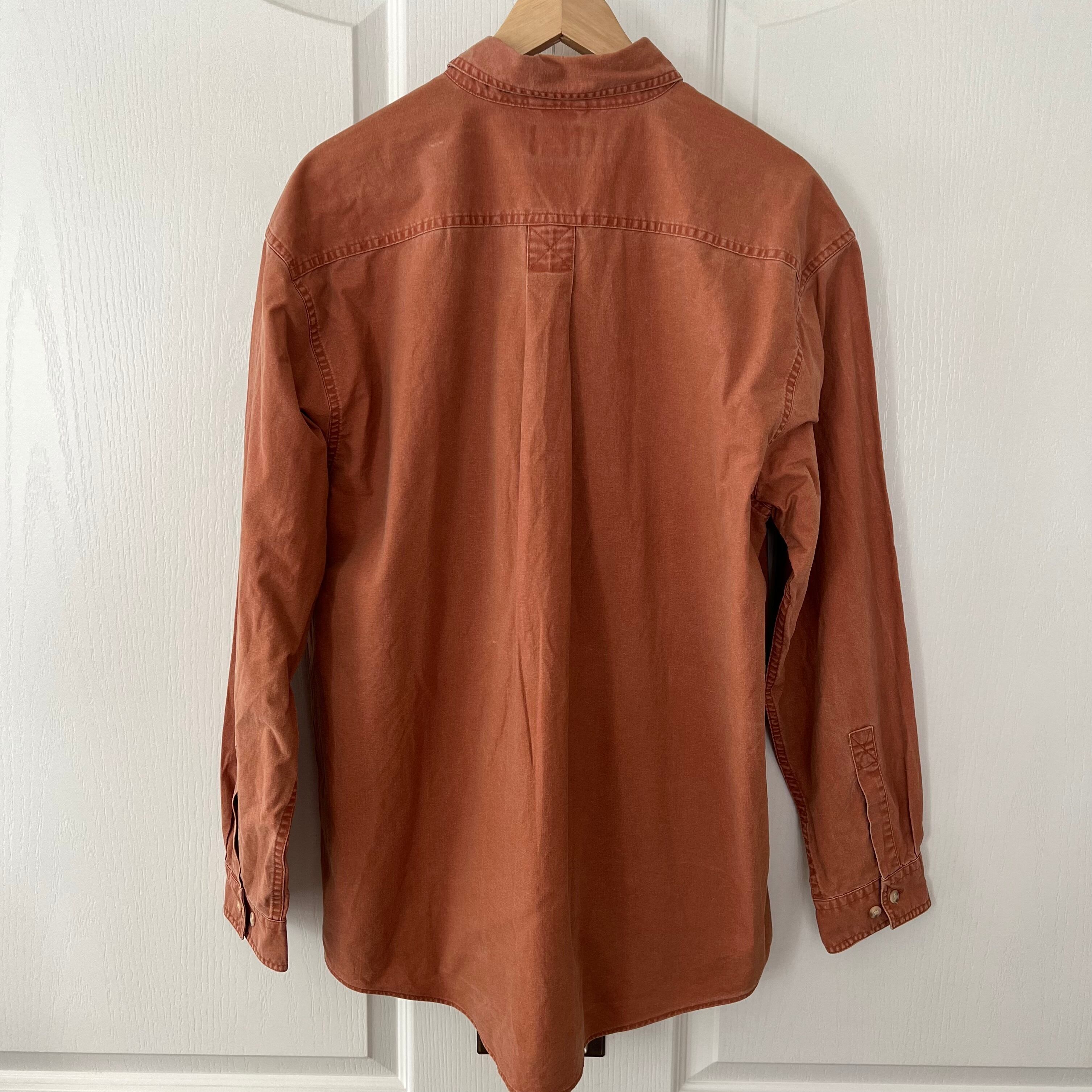 少し色褪せたオレンジカラーのシャツで雰囲気抜群です。